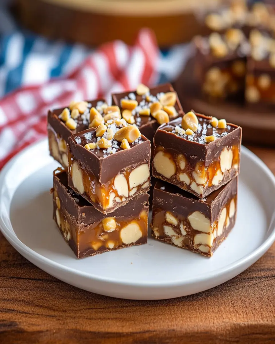 This Snickers Candy Bar Fudge is a sweet treat combining chocolate, peanuts, and caramel, inspired by the classic candy bar.